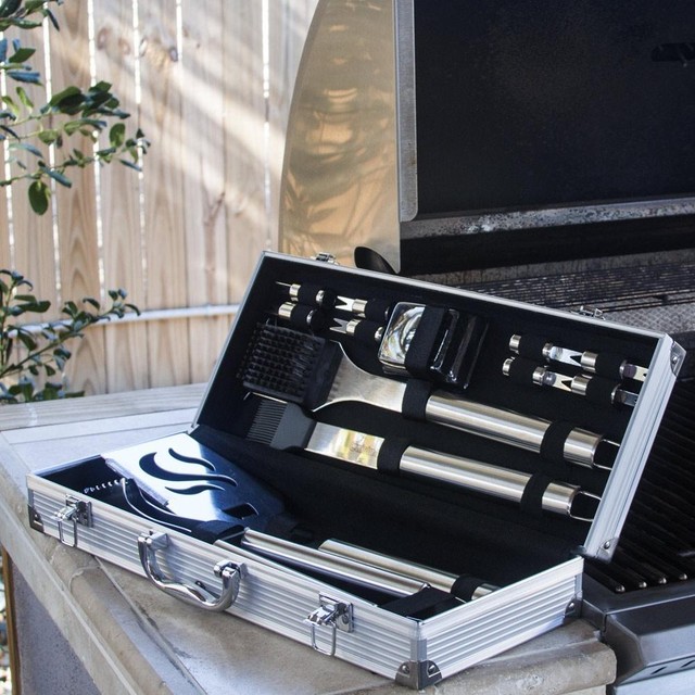 6 Grill Tool Sets That Every Griller Needs To Step Up ... from www.wideopeneats.com And this 20 piece set conveniently comes in a stylish and durable aluminum carrying case. A deluxe grill set that makes grilling easy. And this 20 piece set conveniently comes in a stylish and durable aluminum carrying case. Each tool is designed with elongated handles and a hanging ring for convenient placement during size: Spatula, grill tongs, silicone basting brush, 8 corn holders, 5 skewers, cleaning brush with replacement brush head and digital temperature fork with led light in a handsome aluminum storage case. The digital fork comes in handy when you need to know the actual. These grilling tools will be your best friend at the grill and professional stainless steel design and cuisinart quality make this 20 piece tool set the perfect set for anyone, whether he or she is an amateur griller. And this 20 piece set conveniently comes in a stylish and durable aluminum carrying case.